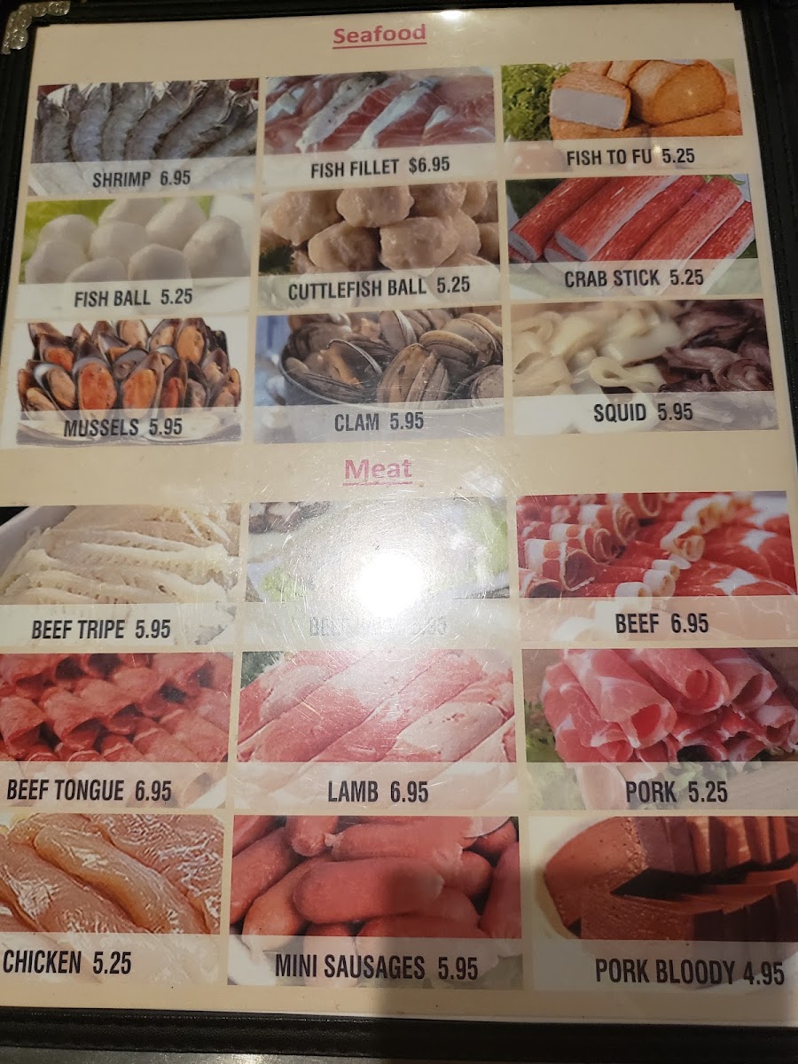 Chicken, beef, shrimp, scallop, squid with mixed vegetable.